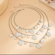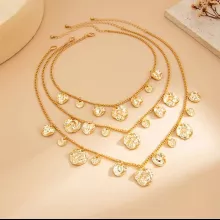 Make every moment unforgettable with this luxury layered choker necklace set. Designed for women who love to stand out, this three-piece set combines vintage charm with modern flair. Each necklace is thoughtfully crafted with irregular circular disc pendants and a gleaming gold-colored chain, giving you the perfect accessory for any occasion—from elegant evenings to casual outings.