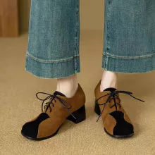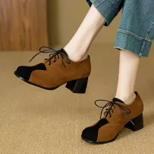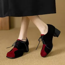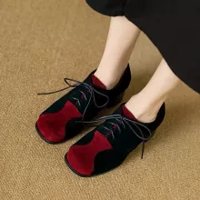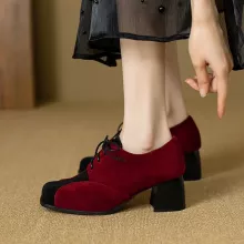 These vintage-inspired lace-up Mary Jane pumps bring together timeless charm and modern comfort. Designed with a chic square toe and a sturdy 2.1-inch block heel, they offer just the right amount of height while keeping you stable and comfortable all day long. Crafted with soft flock suede in a mixed color finish, these pumps add a stylish twist to your daily outfits, making them perfect for work, casual outings, or weekend gatherings.