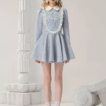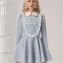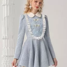 This vintage-inspired dress is perfect for any occasion where you want to stand out with a graceful, feminine look. The contrasting lace adds sophistication, while the doll collar and short silhouette give it a youthful charm. Whether you’re meeting friends for coffee, attending a family gathering, or enjoying a cozy holiday dinner, this dress is a versatile and stylish choice.