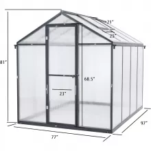 Elevate your gardening experience with the 6′ x 8′ Walk-In Polycarbonate Greenhouse. This spacious, durable greenhouse is perfect for both seasoned horticulturists and gardening enthusiasts looking to extend their growing season. Featuring a robust aluminum frame and high-quality polycarbonate panels, it offers the ideal environment to protect and nurture your plants.