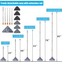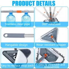 • 360° rotating triangle mop head cleans deep corners, ceiling edges, and under furniture