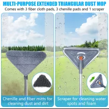 Ideal for both wet and dry cleaning, the set includes six reusable mop pads—three ultra-absorbent chenille pads for wet use and three microfiber pads for dry dusting. With a fully customizable handle that extends from 25 inches to 85 inches, you’ll never need a step stool or strain your back again. Whether it’s spring cleaning or daily maintenance, this is the ultimate cleaning companion for walls, windows, floors, and ceilings.
