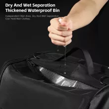 Crafted from tough, high-grade polyester, this backpack is built to handle rough conditions while keeping your belongings protected. Its water-resistant and dust-proof exterior shields your gear from rain, splashes, and dirt, so you can keep riding without worry. The innovative dry-wet separation system is perfect for cyclists carrying a mix of clean clothes, damp gear, or shoes—everything stays organized and fresh.