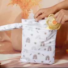 Stay one step ahead of spills, leaks, and clutter with this convenient 2-piece waterproof mini wet/dry bag set. Designed for parents who are always on the go, these small yet mighty bags are perfect for neatly storing diapers, wipes, cloth inserts, nursing pads, or even wet clothes. With a cute animal print design and ultra-portable size, they easily slip into any diaper bag or purse without taking up too much space.