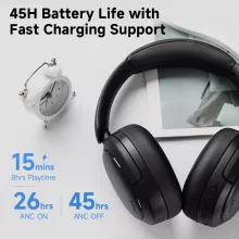 Say goodbye to battery anxiety. With up to 45 hours of playtime on a single charge, these headphones keep your music going for days. Need a quick boost? Just 10 minutes of charging gives you an extra 5 hours of use—perfect when you’re on the go.