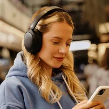 Enjoy all-day comfort with soft, skin-friendly ear cushions and a lightweight foldable design. The adjustable headband ensures a secure yet gentle fit, making these headphones ideal for long listening sessions, commutes, or extended flights. With multipoint connectivity, you can effortlessly switch between two devices—perfect for moving from a business call on your laptop to your favorite playlist on your phone.