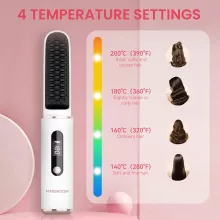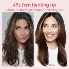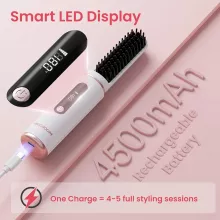 This rechargeable straightening brush is all about convenience and performance. With a fast 20-second heat-up time, four adjustable temperature settings, and up to 60 minutes of cordless use, you’ll always be ready to style in a hurry. The negative ion technology tames frizz, enhances shine, and helps protect your hair from damage. Its anti-scald design ensures a safe and comfortable experience every time.