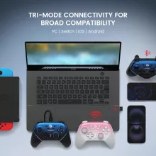 - Multi-platform connectivity – Works with PC, Switch, Android, and iOS via Bluetooth, wireless dongle, or wired connection.