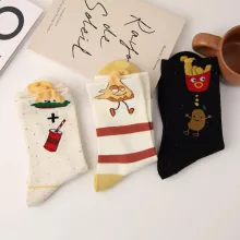 Step into a world of fun and comfort with these adorable women’s cartoon socks featuring a quirky burger and fries design. Perfectly blending cute Japanese kawaii style with everyday wearability, these socks bring joy to your wardrobe while keeping your feet cozy all day long. Made from a breathable cotton-polyester blend, they are soft, stretchy, and designed to stay comfortable whether you’re at home, at school, at work, or out with friends.