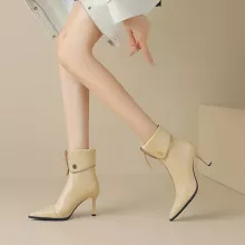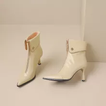Turn heads and embrace your confidence with these stunning pointed-toe ankle boots. Designed to blend modern fashion with timeless elegance, these high-heeled boots are the perfect addition to your wardrobe. Crafted with genuine cow leather and a sleek 3.15-inch (8 cm) thin heel, these boots exude sophistication and style. The retro turned-over edge and chic front zip closure add an edgy yet refined touch, making these boots a must-have for the autumn and winter seasons.