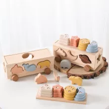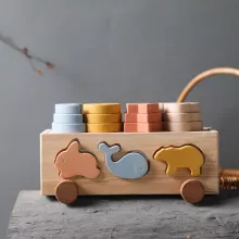 This versatile educational toy combines engaging play with essential learning experiences for young minds. Designed to foster cognitive development, hand-eye coordination, and spatial reasoning, this toy set is perfect for children aged 3 to 12 years. The set includes a charming wooden cart with silicone animal shapes and colorful blocks, making it both an interactive game and a handy storage solution.